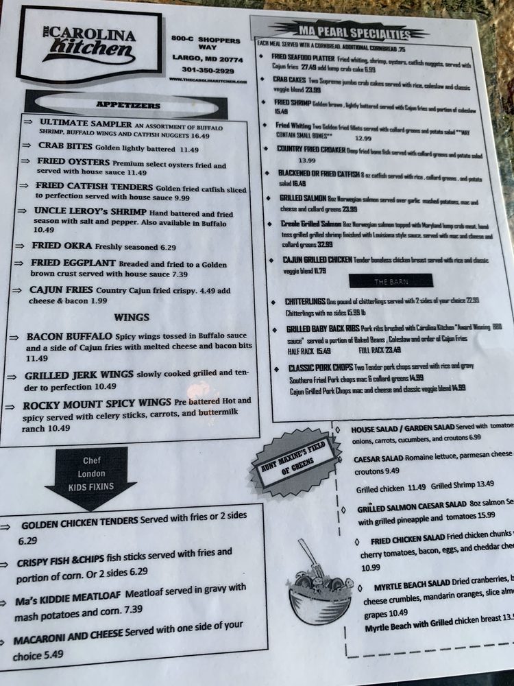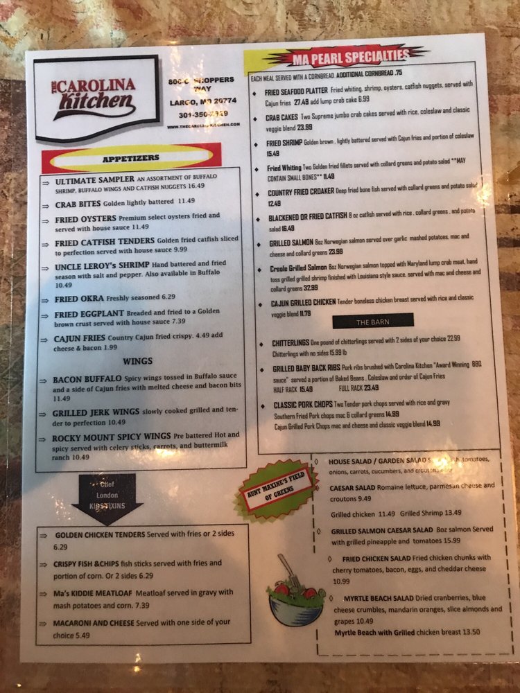 Carolina Kitchen Menu
